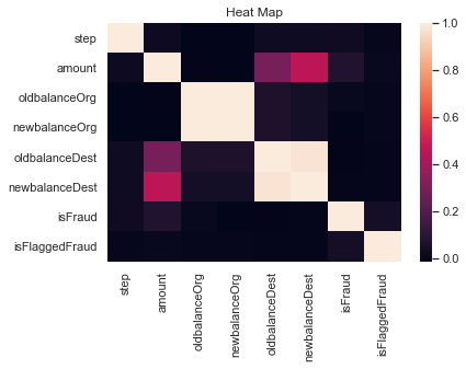Here it can be seen that oldbalance* and newbalance* are highly correlated with each other since transaction amounts are typically a small proportion of account balances i.e, account balances have high correlations with themselves.